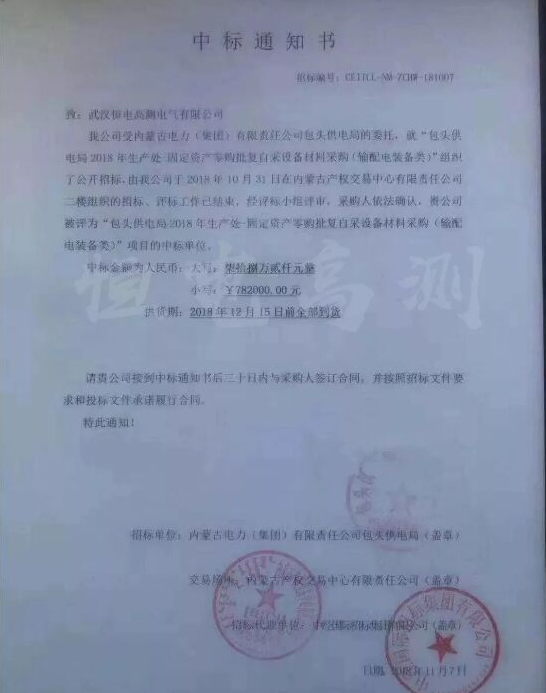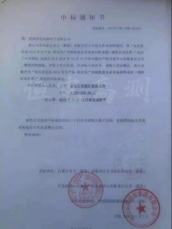 ? ? ? ?在“包頭供電局2018年生產處-固定資產零購批復自采設備材料采購(調度自動化類)”項目中,我司自主生產研發(fā)的產品在眾多同類產品中脫穎而出,獲得了客戶的青睞,成功中標此項目的3個段標。近期備貨已完成,即將安排發(fā)貨。